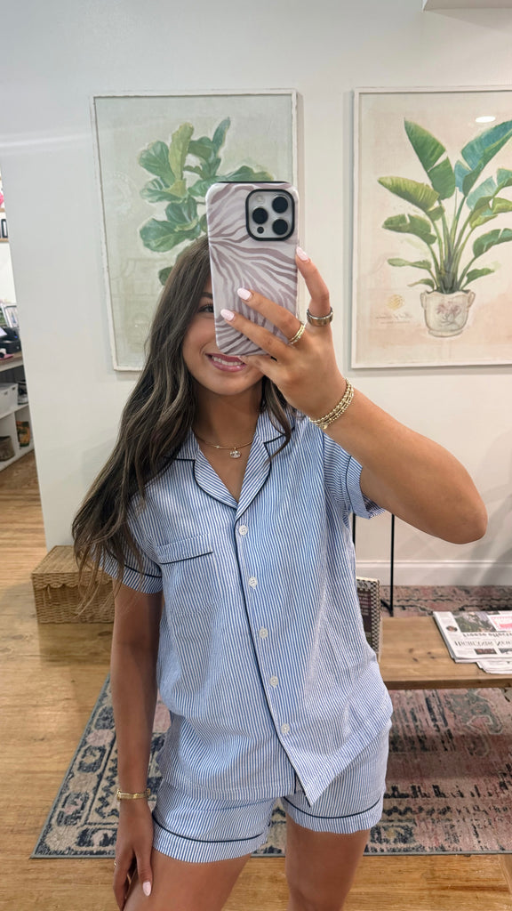 Blue Seersucker Shorty Pajamas